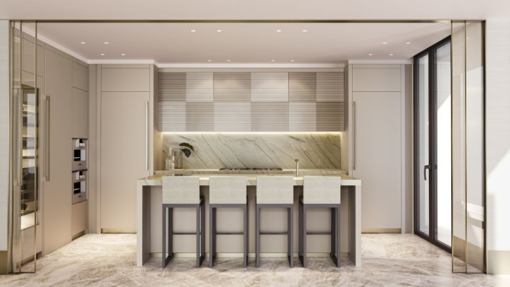 The One Atelier’s vision for Casa Milano balances tactile luxury with timeless restraint. Soft neutral tones beige, cream and light blue set the stage for bronze and gold accents, brushed metal details and luxe natural stones such as Taj Mahal quartzite. Select pieces from Armani/Casa enhance the European residential character while delivering unmistakable sophistication.