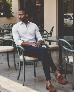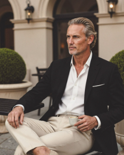 Chinos are a modern staple for office wear, offering comfort without sacrificing elegance. Pairing beige chinos with a black blazer and white shirt creates a soft contrast and defined style. Slim-fit blue chinos combined with a white shirt provide a contemporary, clean, and casual aesthetic. Hockerty’s bespoke tailoring ensures that every pair of chinos fits perfectly, contributing to a cohesive capsule wardrobe.