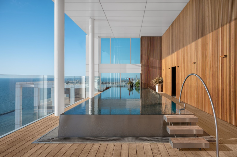 Inside, contemporary elegance meets coastal cool. Guests can swim in glass-walled infinity pools overlooking the sea, enjoy kosher farm-to-table dining at Katzir, or unwind at Cloud, the exclusive rooftop lounge with panoramic views of the Mediterranean.