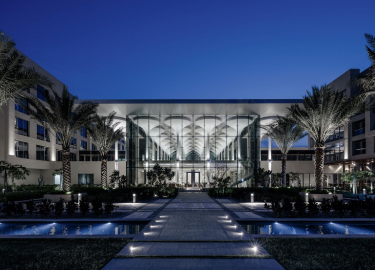 The hotel’s architecture tells its story — a grand lobby inspired by traditional lanterns, sweeping arches, and shimmering light patterns that shift through the day. With eleven restaurants and lounges, guests can explore a global culinary journey, from Arabic mezze to Japanese fine dining.